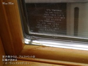 このマーヴィン(Marvin)の窓を含めて、輸入のサッシのペアガラスは、全て室内側から見た時に文字が読めるような向きで取付けられています。