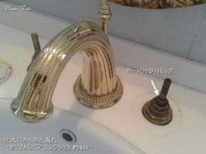 状況を確認すると、ヤスダ・プロモーションのカリフォルニア・コレクションというシリーズの輸入水栓で、洗面の水栓金具の吐水口からポタポタと水が落ちるというトラブルでした。