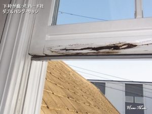 まだ、写真をメールでお送り頂いただけですから、現場を見てから判断しなければいけないと思っていますが、最近の事例からすればガラスと外装アルミカバーとの接点やアルミカバーのつなぎ目から雨水が侵入して、本体の木が腐った可能性が高いように思います。