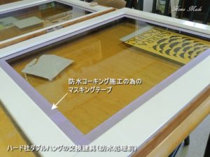 昨日、旧ハード(Hurd、現シエラ・パシフィック)社の新しい交換用建具(障子)を塗装したという記事を書きましたが、今日はサッシの防水処理です。