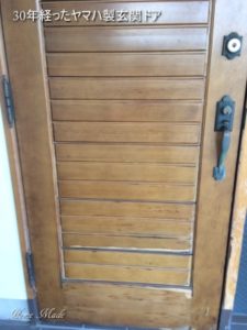 こちらの写真は、新築から30年経ったヤマハの木製玄関ドア。